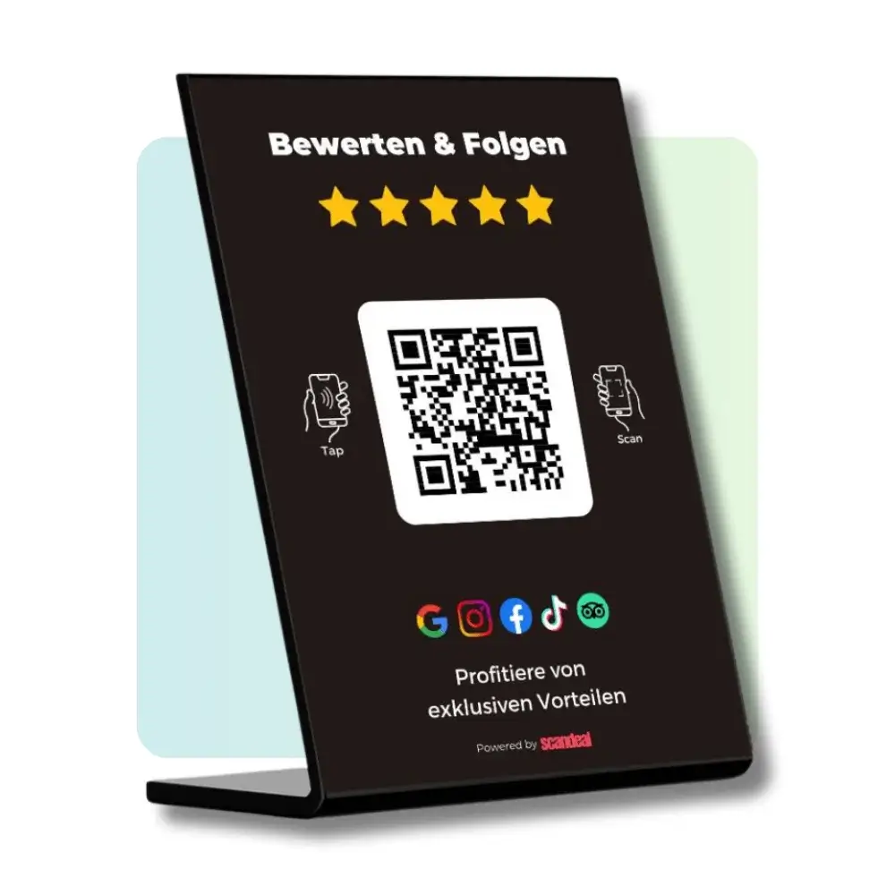 Mit dem Google Bewertungsständer in Schwarz gewinnst du gezielt mehr Kundenbewertungen und stärkst deine Online-Reputation – eine einfache Lösung für langfristigen Erfolg und professionellen Kundenkontakt!